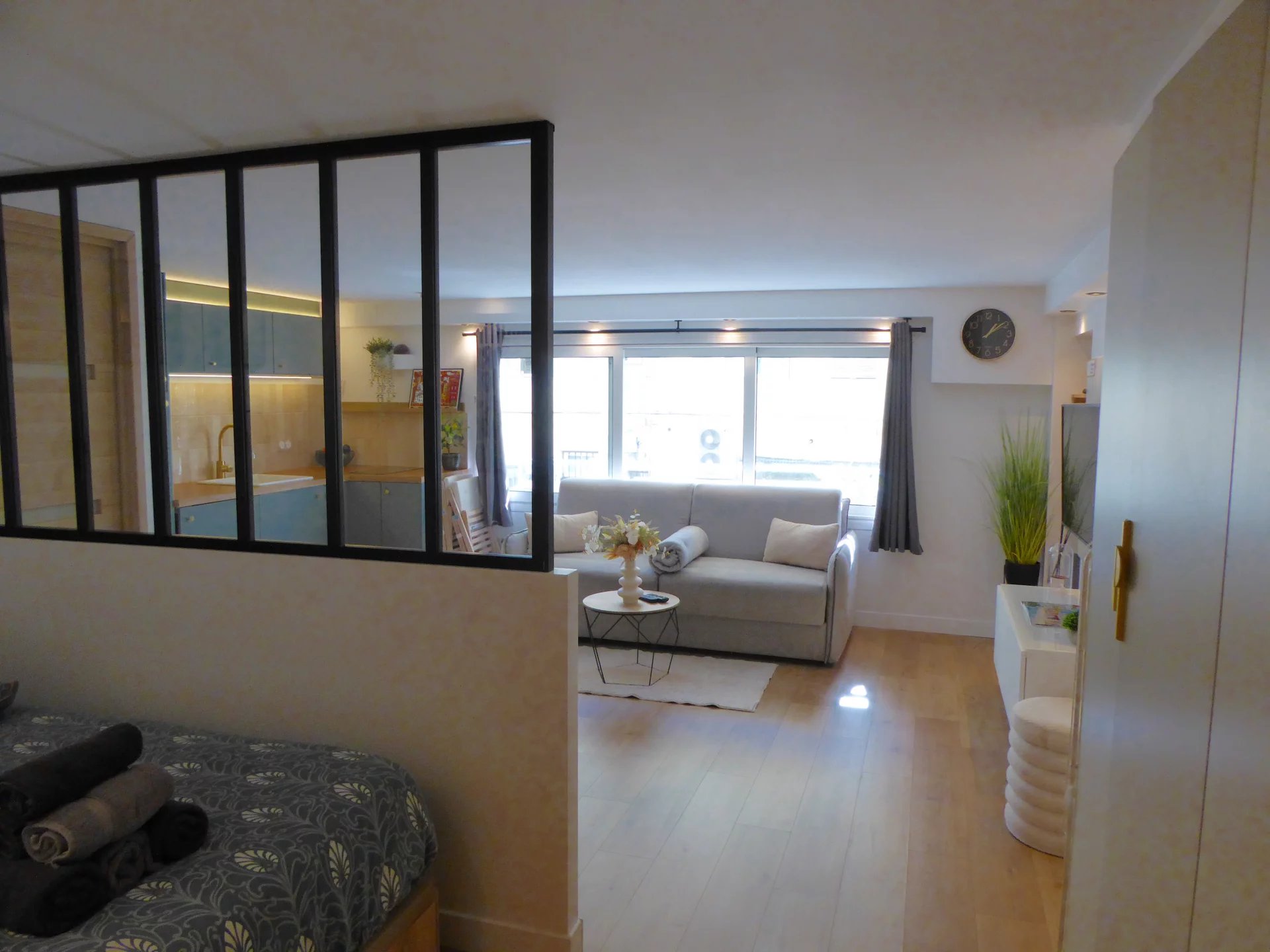 Apartment located in the heart of Menton city center and at the gateway to the historic district, completely renovated and featuring a large living area with equipped kitchen, sleeping area, and shower room. A large adjoining room can also be converted. Currently rented seasonally, excellent rental yield.
