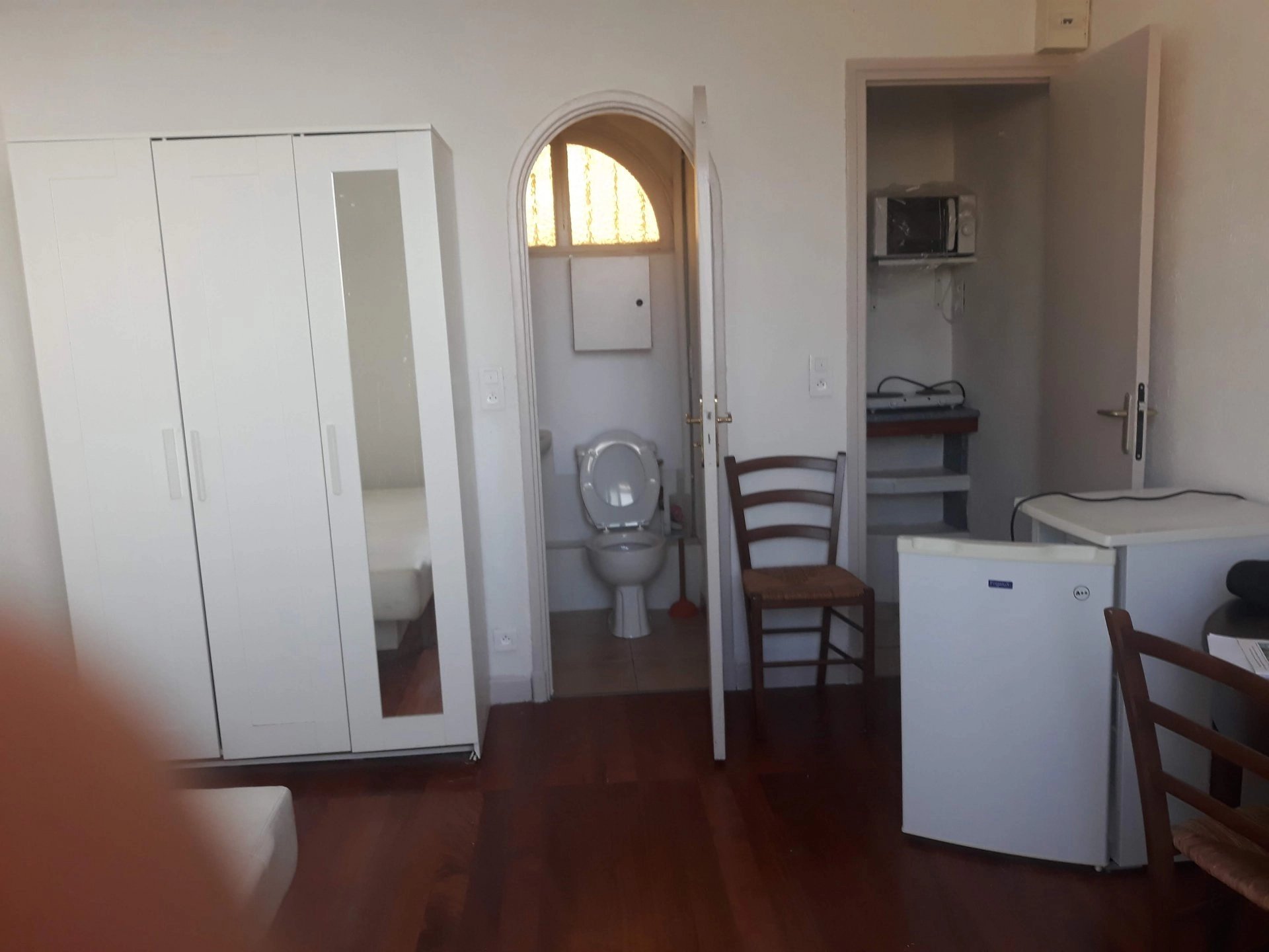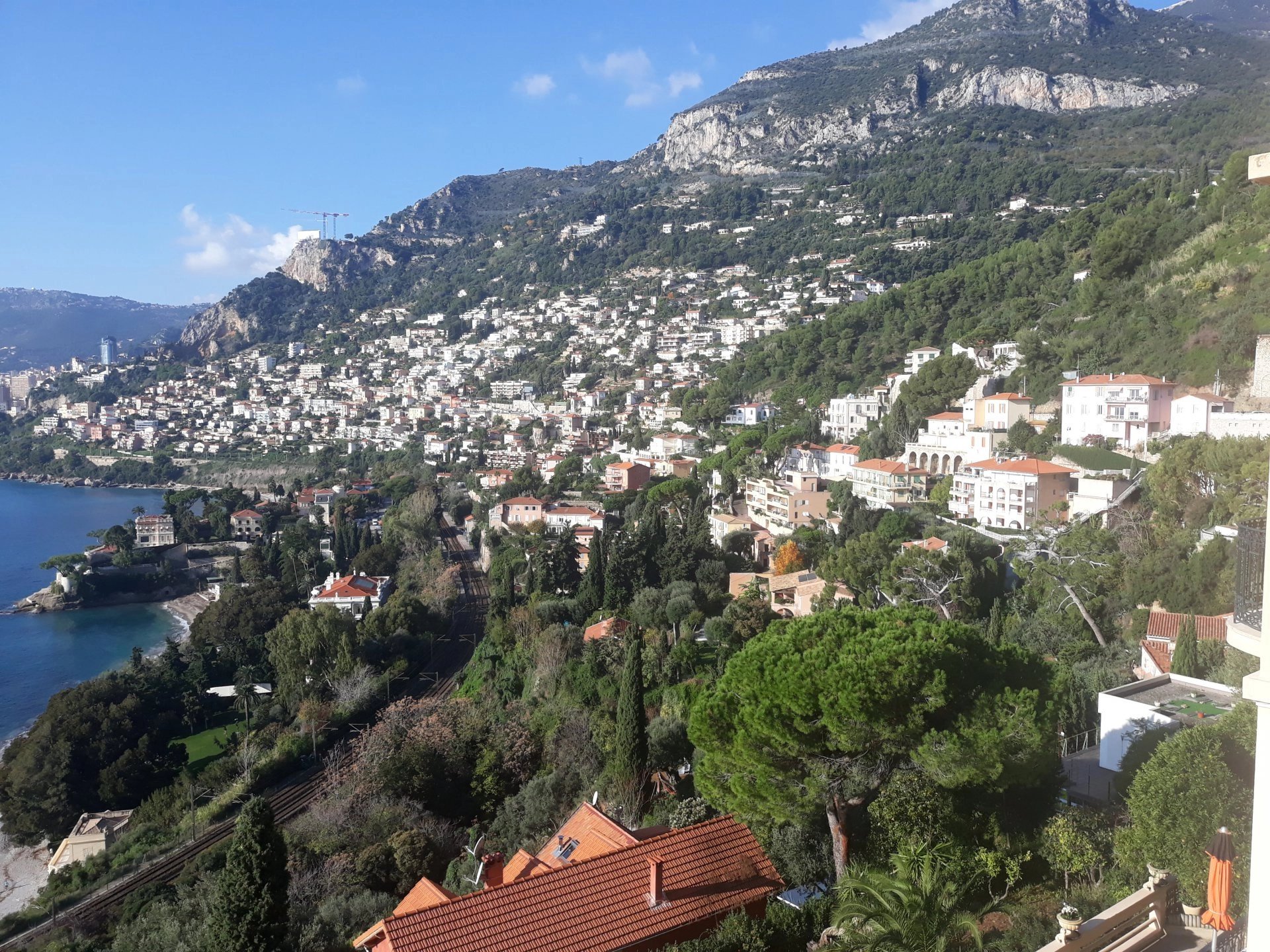 Aux portes de Monaco, dans maison de pays, studette avec vue panoramique mer et collines composée d'un séjour avec coin kitchenette, salle de bains avec WC.